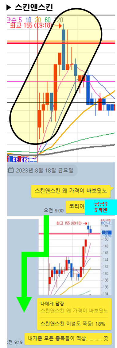 스킨앤스킨은 2015년에 6천원 가까이 거래됬던 종목인데, 최근에는 동전주중에도 가장싸다고 하는 백원대에 거래되는 비운의 종목입니다. 저는 이종목을 다시 언급하기 시작했고 오늘 오전에만 4%상승출발이후 단 18분만에 18%이상의 급등이 바로 나왔습니다.